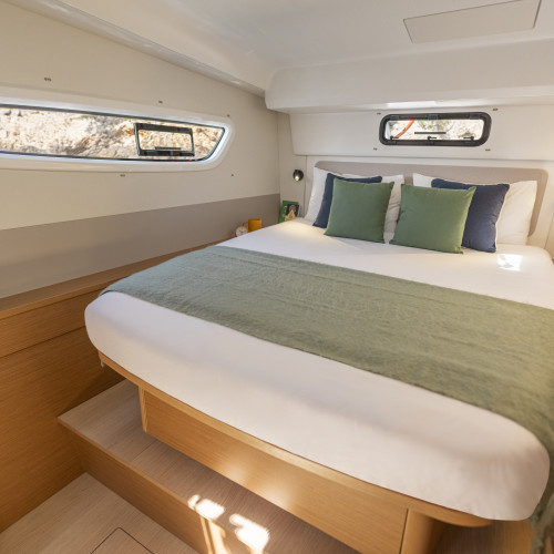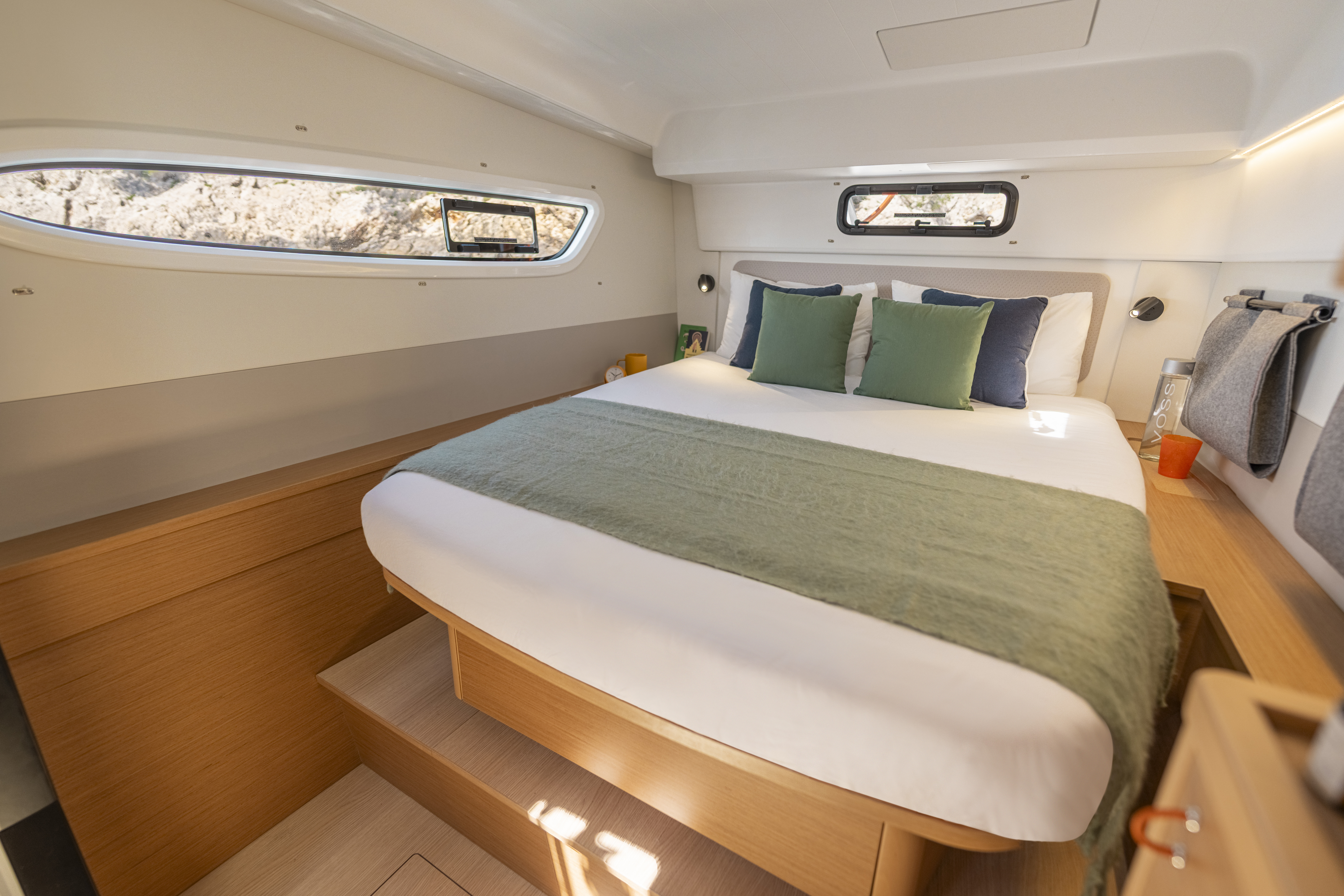 Cabine, confort sans compromis : Des espaces pensés pour le repos, dans un esprit simple et fonctionnel, fidèle à l’ADN Excess.